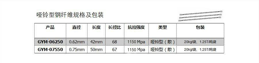 啞鈴型鋼纖維屬于冷拔型鋼纖維,這種纖維的抗拉強度高達1150MPa。其特點是在纖維的兩端有特殊的平面設計,這個設計為鋼纖維在混凝土結構中提供了最佳的錨固條件,而不是簡單依靠混凝土與鋼之前的摩擦來提高混凝土的性能。